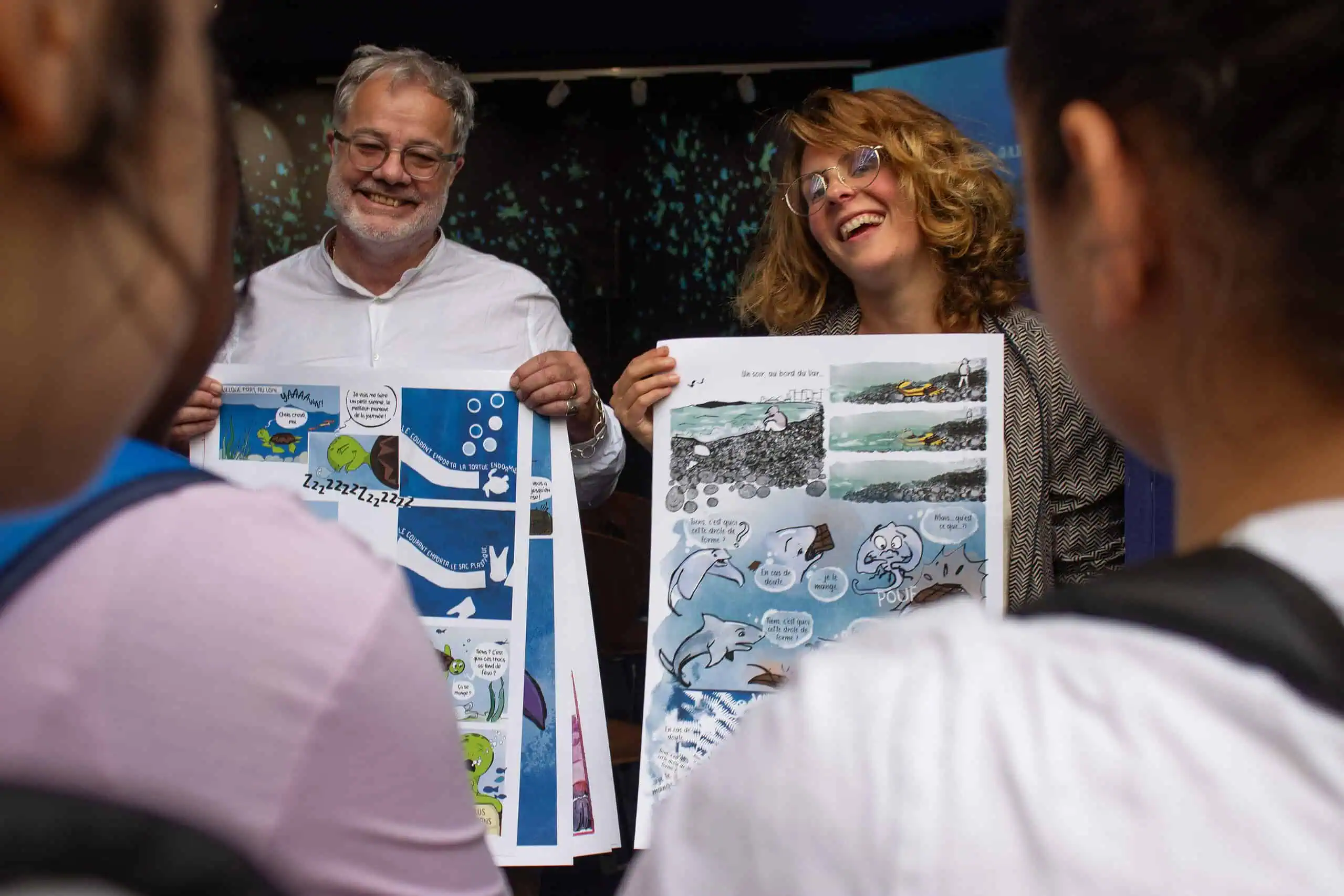 In June 2025 we participated in the UNOC3 (UN Ocean Conference 3 in Nice in June 2025) with WE ARE OCEAN_Nice Raconte-moi la Mer! Together with our school partner Collège Jules Romains in Nice (WAO Nice has been selected during an open call organised by the EU-funded SHORE project and will receive 9.900 € to implement a blue project on the topic of the Mediterranean) we launched the project in March with the artist Morgane Ganault supported by the marine geologist Christian Gorini from Sorbonne University Paris and CIESM, in collaboration with the Musée D´Art Moderne et d´Art Contemporain (MAMAC) in Nice, France.