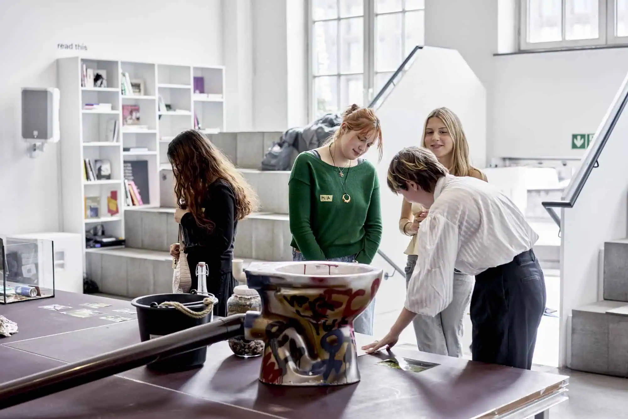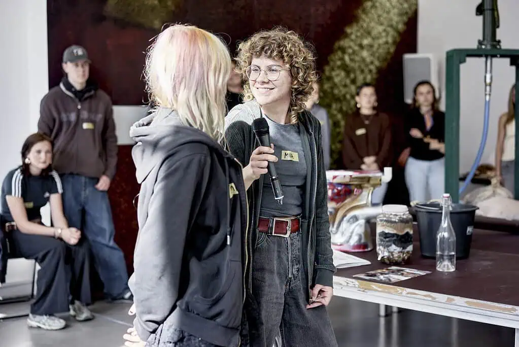 The results of the workshops were then  presented to the public at Kunsthaus Hamburg. After an introduction to all art works created by the students, we had an animated fishbowl discussion with Anne-Marie Melster and Julia Moritz (curator WE ARE OCEAN_Blaupausen), Till Krause (artist), natural scientist Dr. Said Yasseri, and the Art Profile 12b class of the Ida Ehre School with Lana Akter, Maria Ataman, Ava Bertram, Çan Celik, Minna Husen, Lena Krispin, Tristan Künzel, Charlotte Lübbers, Emmi Oettinger, Mia Peschel, Tilda Peters, Melodi Roshan Zaer, Lilian Rust, Seli Tadesse, Henriette Wagner, Daniel Wolff (teacher), Mia Wolff, and Lara Wunderwaldt.