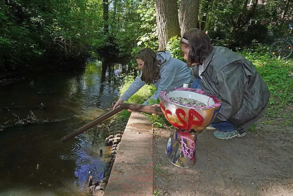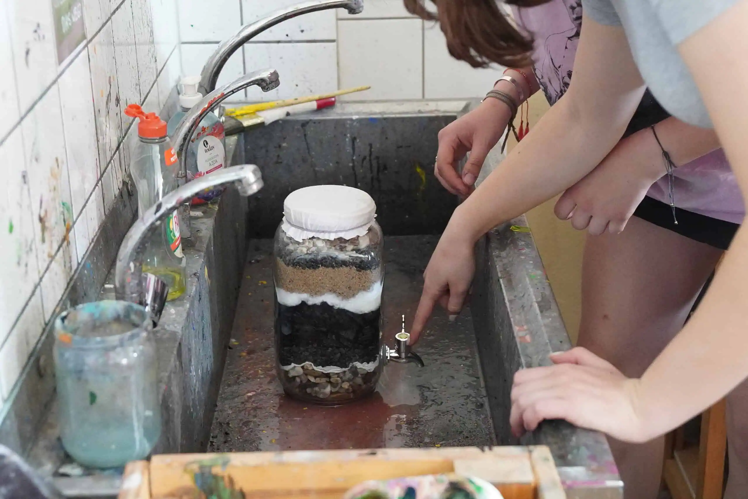 WE ARE OCEAN_Blaupausen continued its journey from Berlin to Hamburg, where artist Till Krause organized a workshop and excursion program for the art profile 12b class at the Ida Ehre School in Hamburg around the Elbe waters. These students outstandingly engaged with the artist and the ideas of water protection, they created their own solutions, water filters for example, disguised as art works.